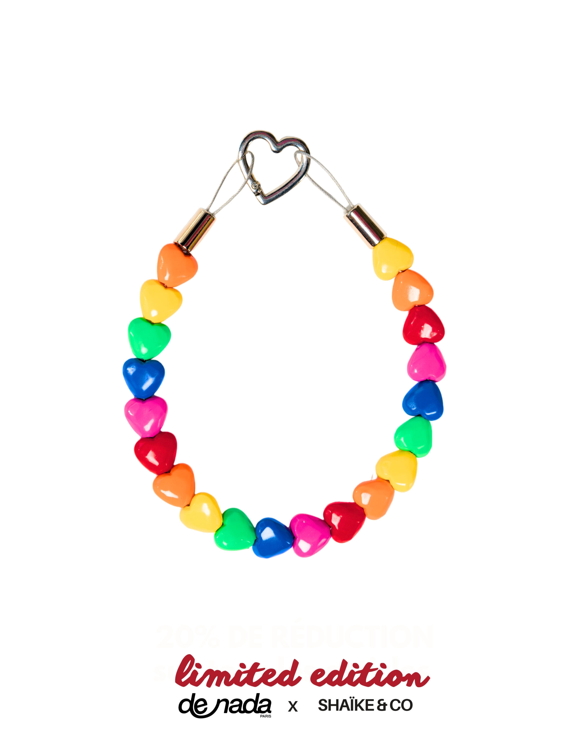 Le collier de perles cœurs Shaïke & Co est composé de perles cœurs multicolores, montées à la main pour créer un collier fantaisie, léger et confortable.